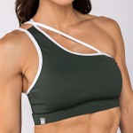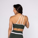 Top fitness ombro único superversátil: pode ser usado com a alça fina em duas posições diferentes. Possui regulagem para ajuste perfeito e cós com elástico embutido para maior sustentação. O detalhe em viés contrastante dá toque moderno e estiloso, ideal para treinos ou looks casuais.