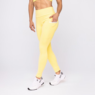 • Calça Legging Poliamida Lux com Bolsos Amarelo Manteiga